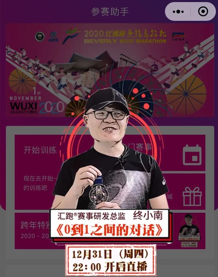而以上这五位嘉宾,都将在12.31跨年直播的特别节目中,为直播间里的观众们带来诸多新年礼物:下面这些礼物,是嘉宾之一汇跑®赛事终小南为大家准备的: